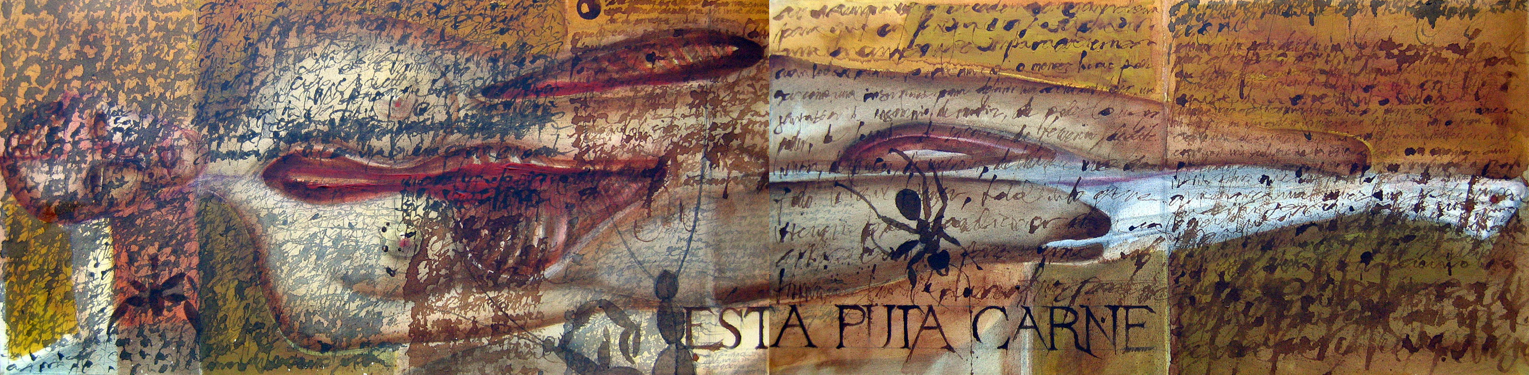 Obra realizada en técnicas mixtas sobre canvas. Es una reflexión acerca de la entropía de la materia, la efimeridad de la vida y la condición humana. Pertenece a una colección particular. Sus medidas son 200 x 50 cm divididas en dos bastidores