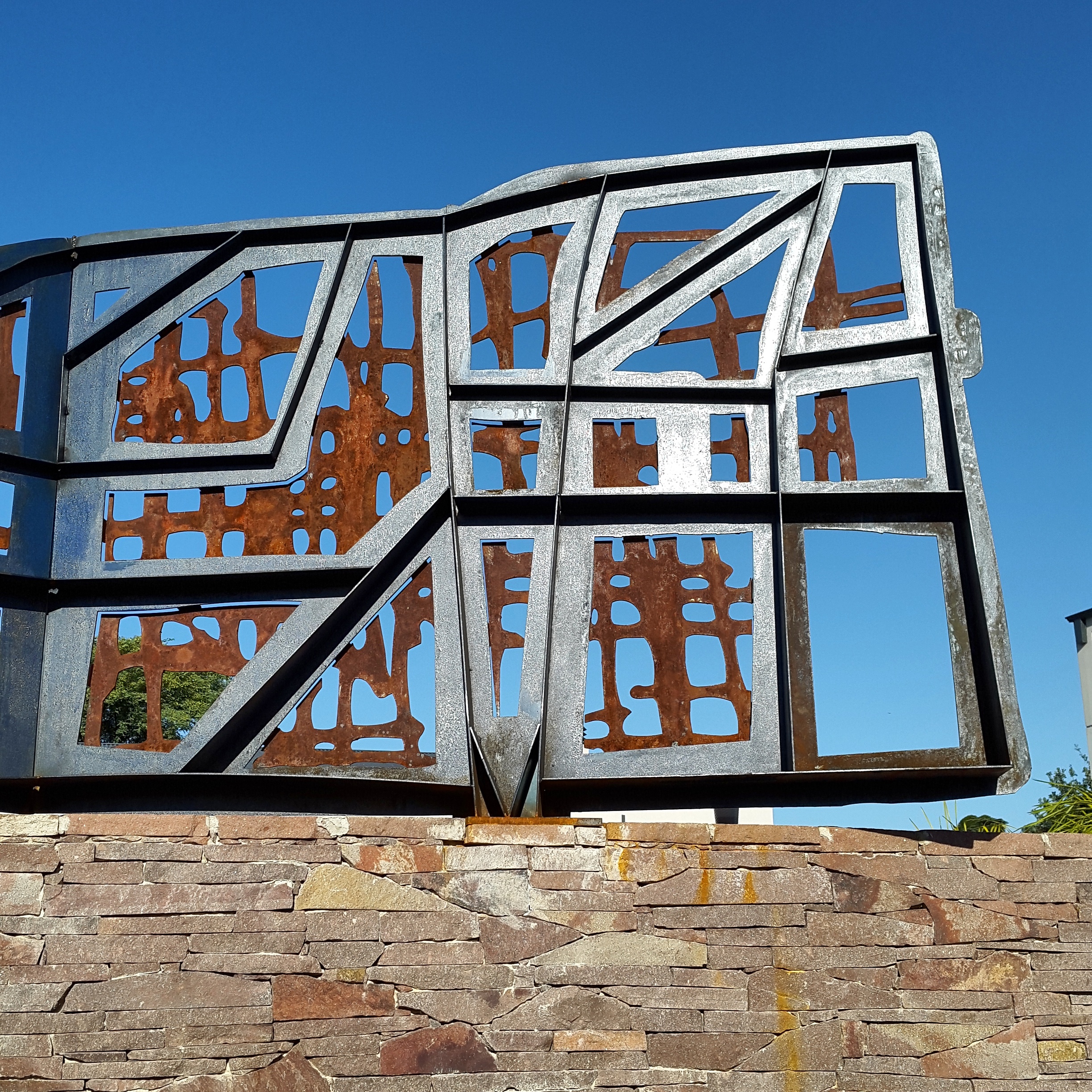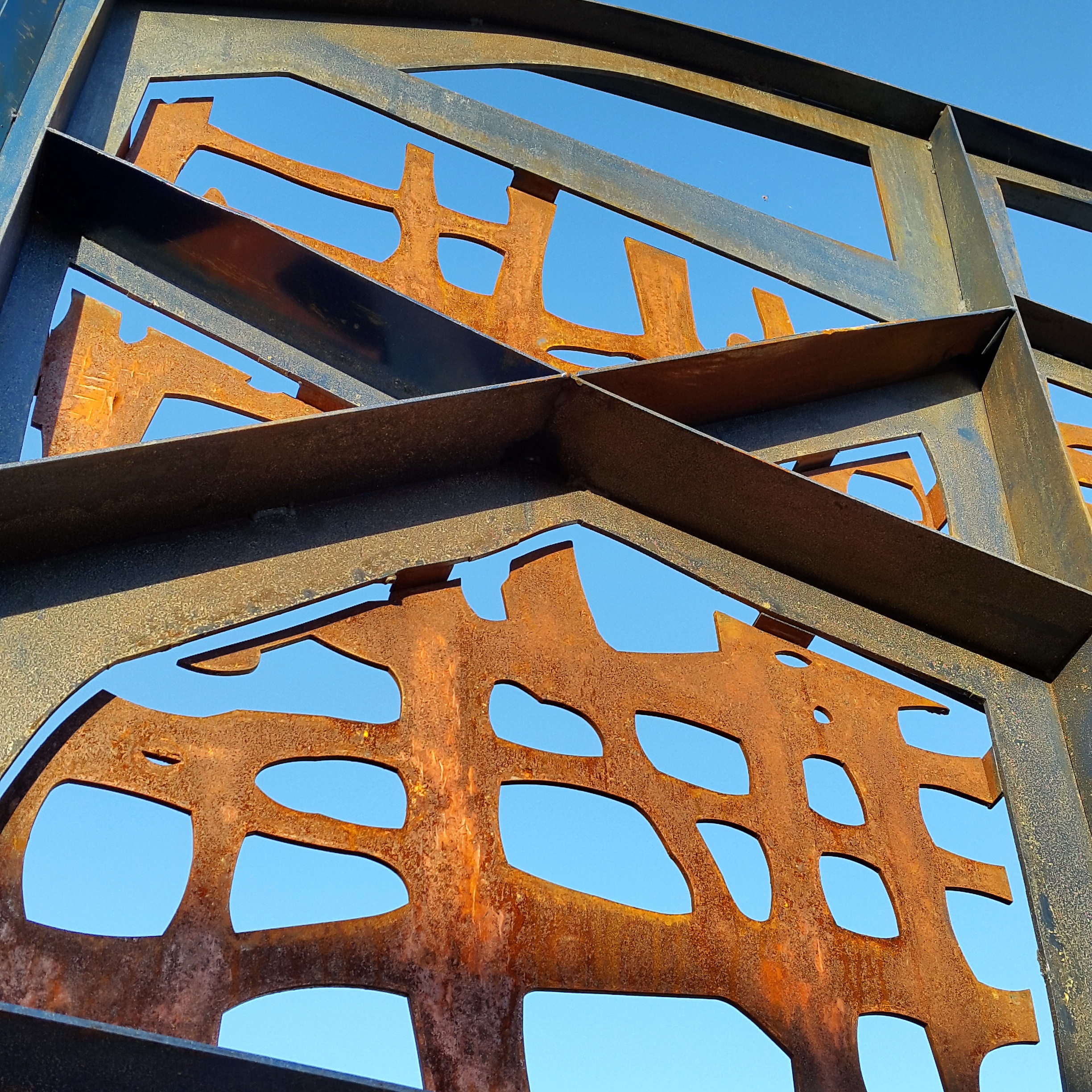 Como poética, la obra es una huella material de diversos procesos: se origina en una expresión gráfica, bidimensional, intuitiva, instantánea. Luego, las lógicas materiales y constructivas aportan atributos a su configuración: la utilización del acero y sus modos de unir -crudos y rudimentarios- proponen un lenguaje mecánico y de constructo industrial. Como parte de su génesis, los autores han dejado la obra librada a la acción natural del contexto y su capacidad de modificación, que tiende a promover procesos entrópicos, es decir, los naturales procesos de degradación y envejecimiento. De esta forma la obra se transforma y cambia abruptamente de aspecto -por acción del sol y la lluvia-, pero se disuelve lentamente en la oxidación constante, como testimonio de las diversas percepciones del devenir del tiempo. Desde esta perspectiva es una obra viva que admite la existencia de la naturaleza y los procesos de transformación que realiza sobre la materia de todas las cosas.