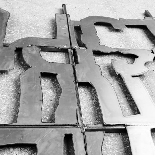 Acero SAE 1010 cortado con CNC. Medidas 180 x 180 cm.