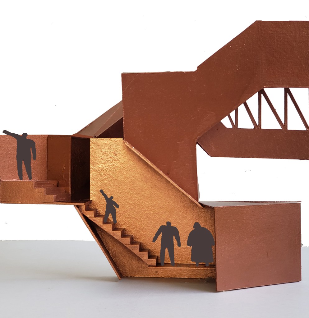 La idea de la obra se origina en la hipótesis de que el arte tiene como una de sus misiones estimular el cambio de mirada consagrada acerca de la Realidad. Además, según esta hipótesis, el arte debiera contribuir a la generación de nuevos paradigmas, establecer nuevos puntos de vista y poner en crisis todo lo aparentemente estable. En este sentido, la propuesta busca establecer la duda sobre su propia condición escultórica, mientras expresa su cercanía conceptual y formal con la arquitectura.
