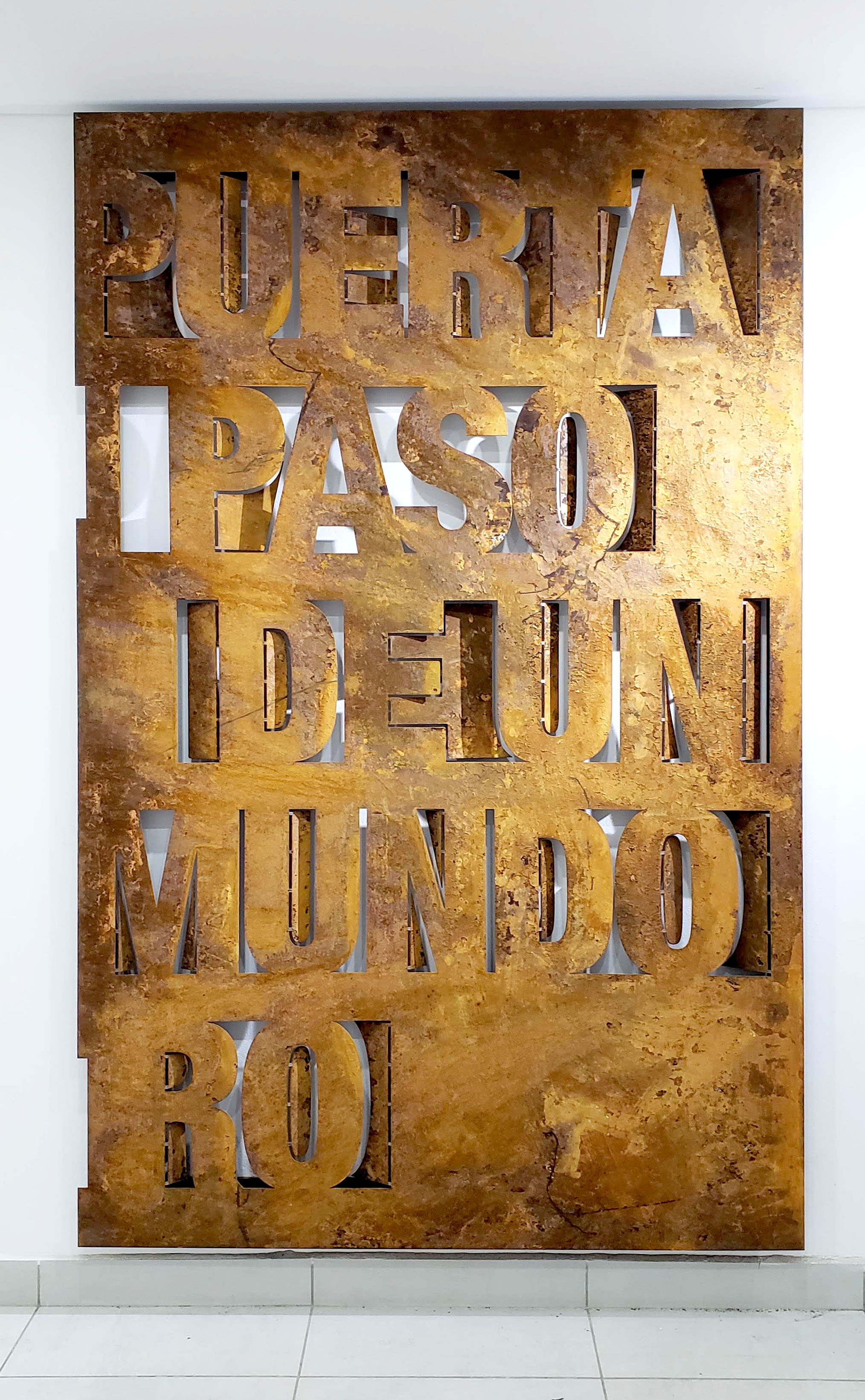Una puerta es un relieve escultórico que forma parte del ingreso al edificio Terra VIII. La obra hace referencia a la condición trascendente del arquetipo «puerta». Consiste en una frase recortada parcialmente que refiere a esta condición arquetípica, que en términos semánticos, sugiere el paso «de un mundo a otro». En la obra se exploran las relaciones entre figura y fondo, la noción de escala y de la «legibilidad» e «ilegibilidad» de un mensaje.