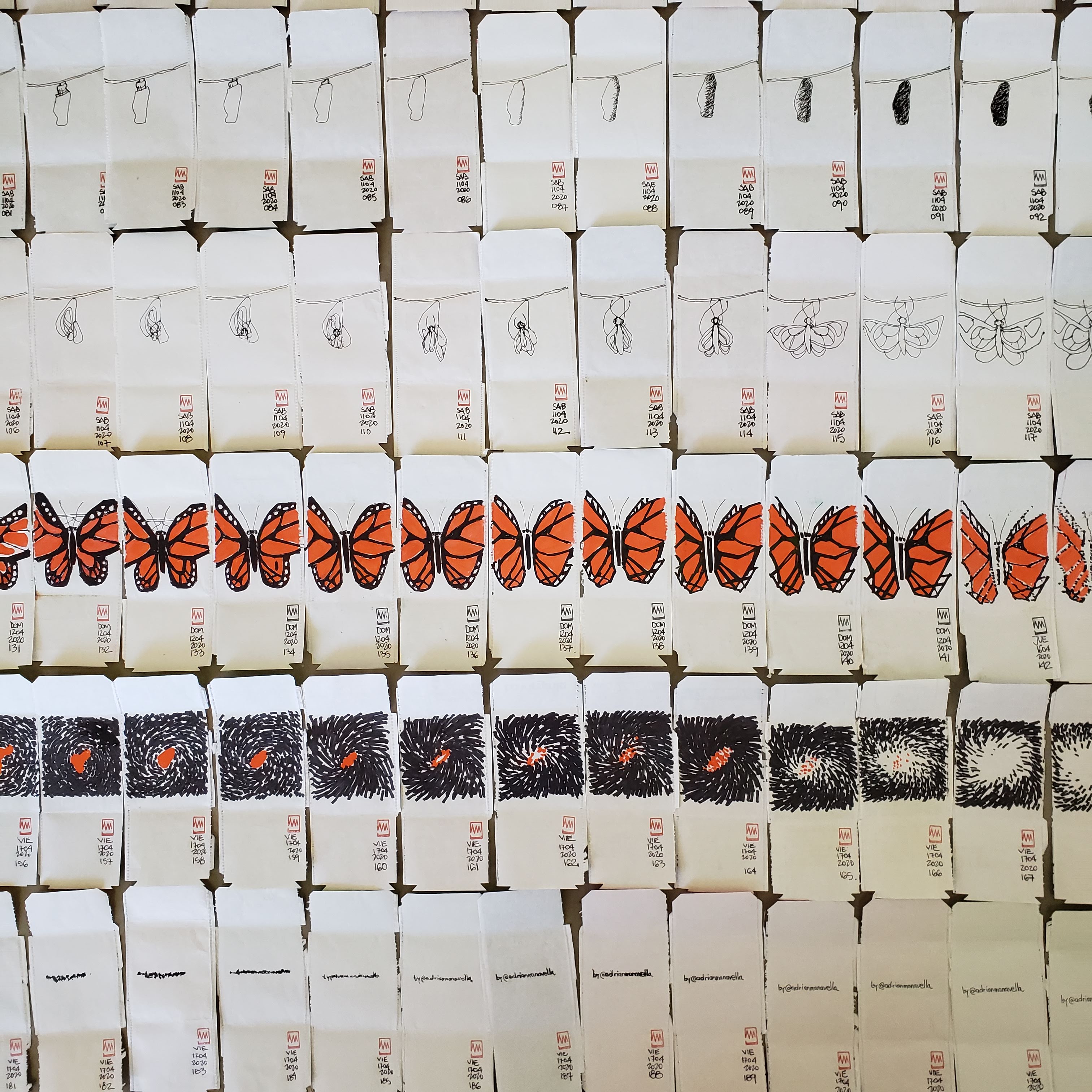 Oruga – mariposa es una animación cuadro por cuadro realizada en dibujos en sobres de papel de té.
