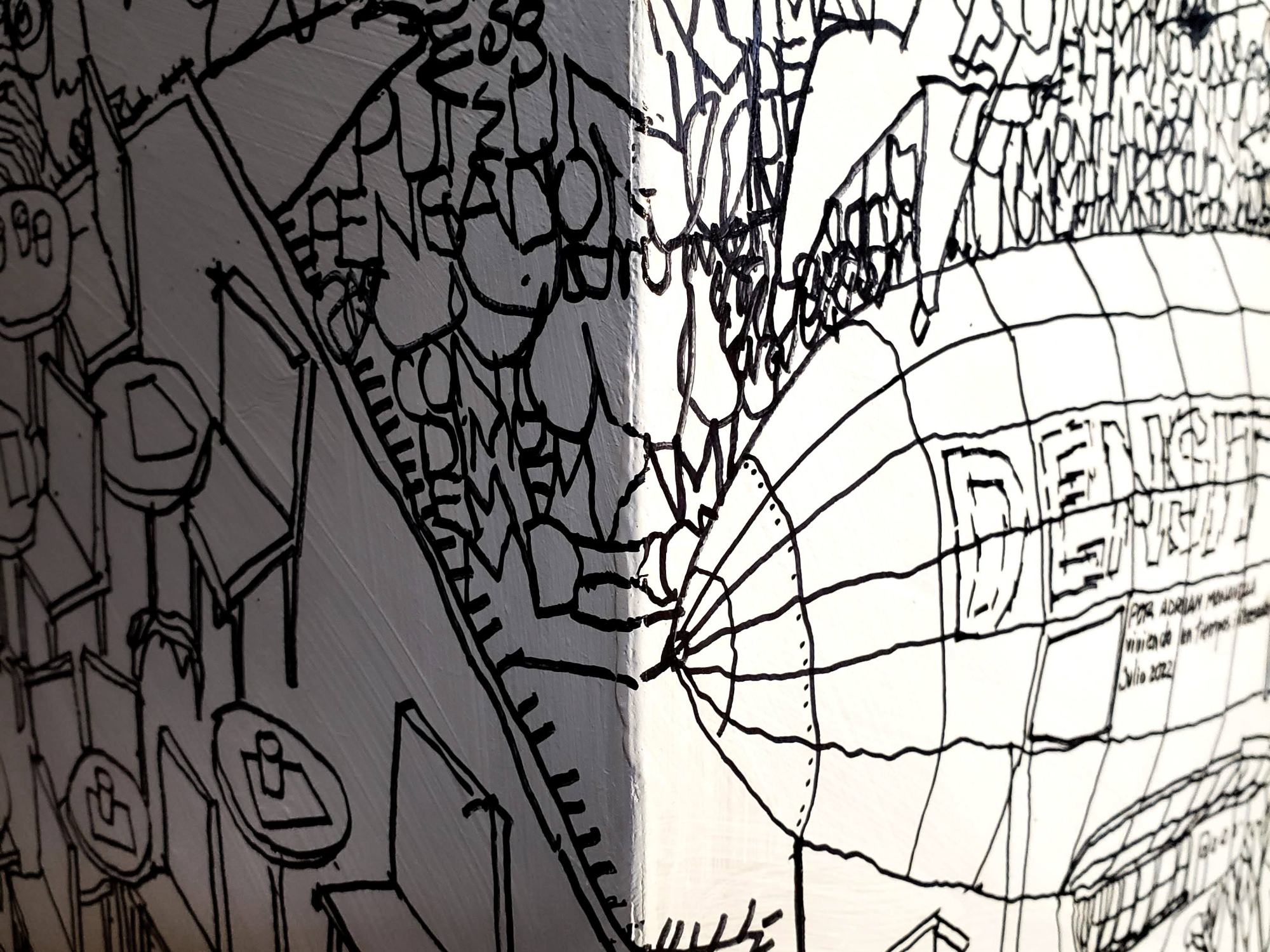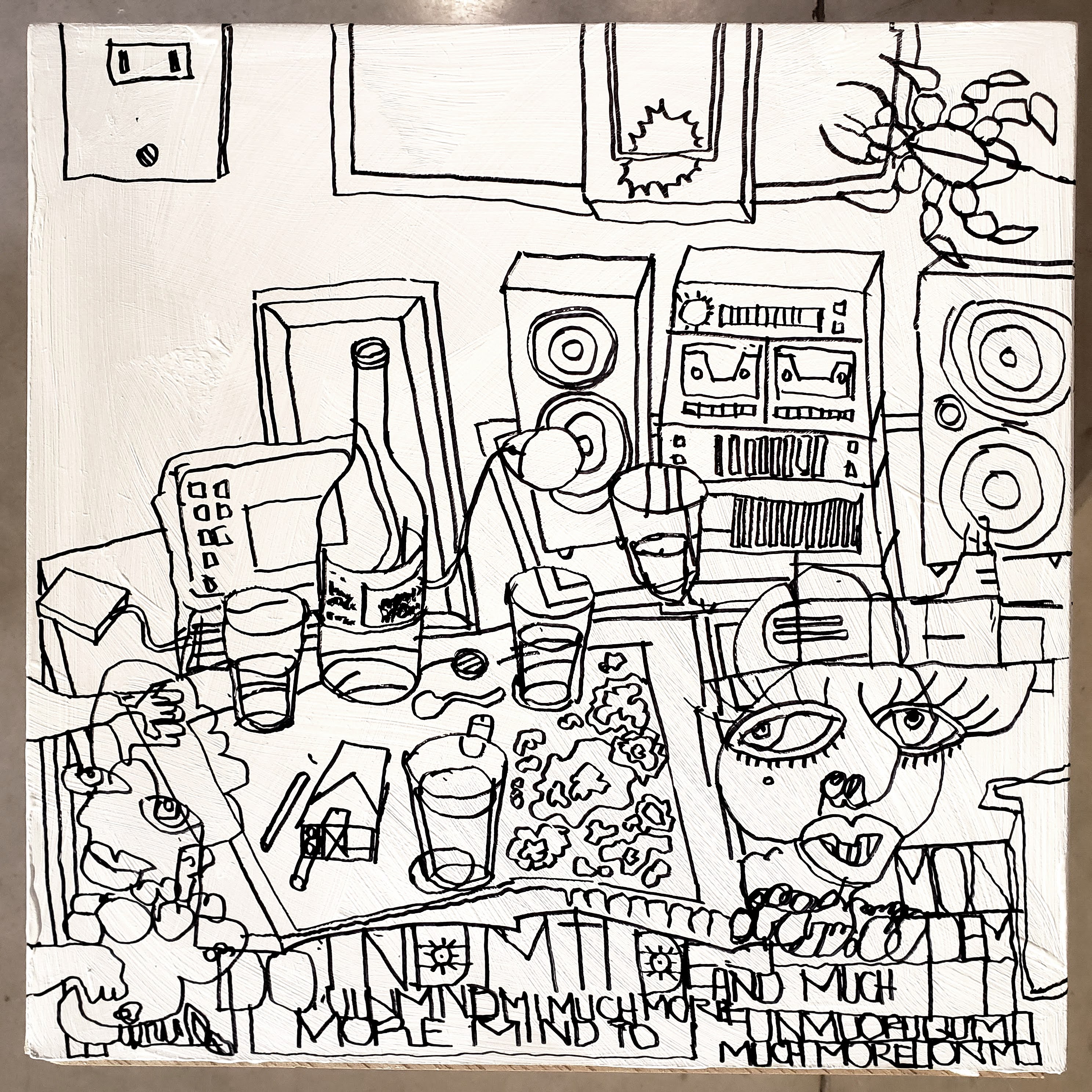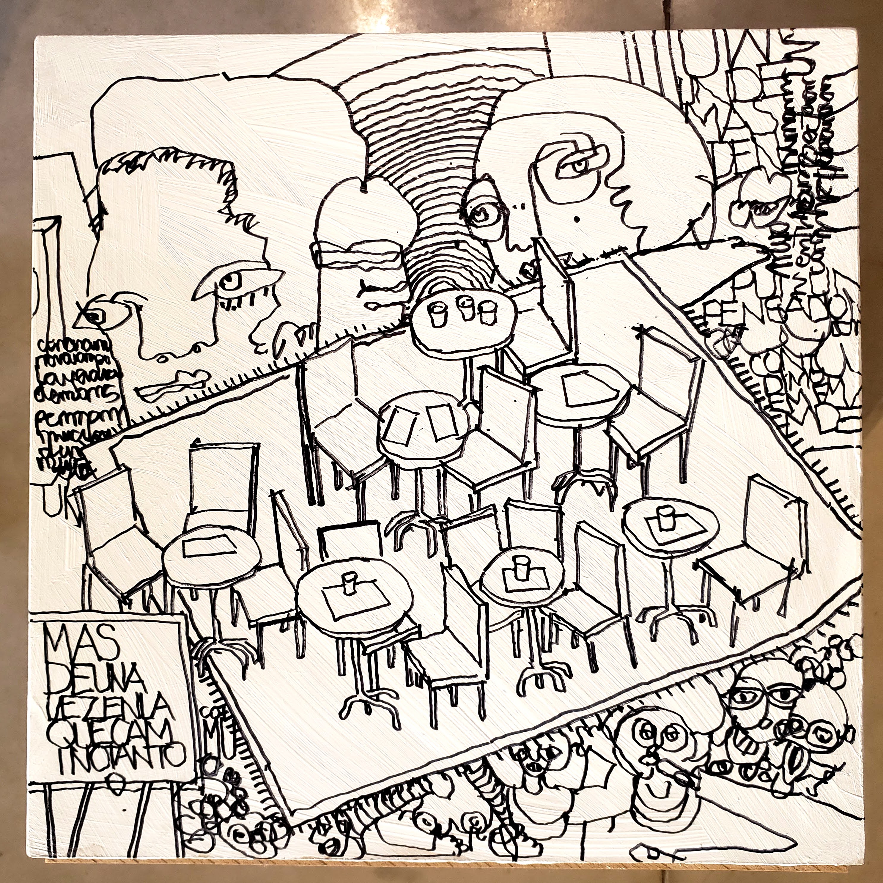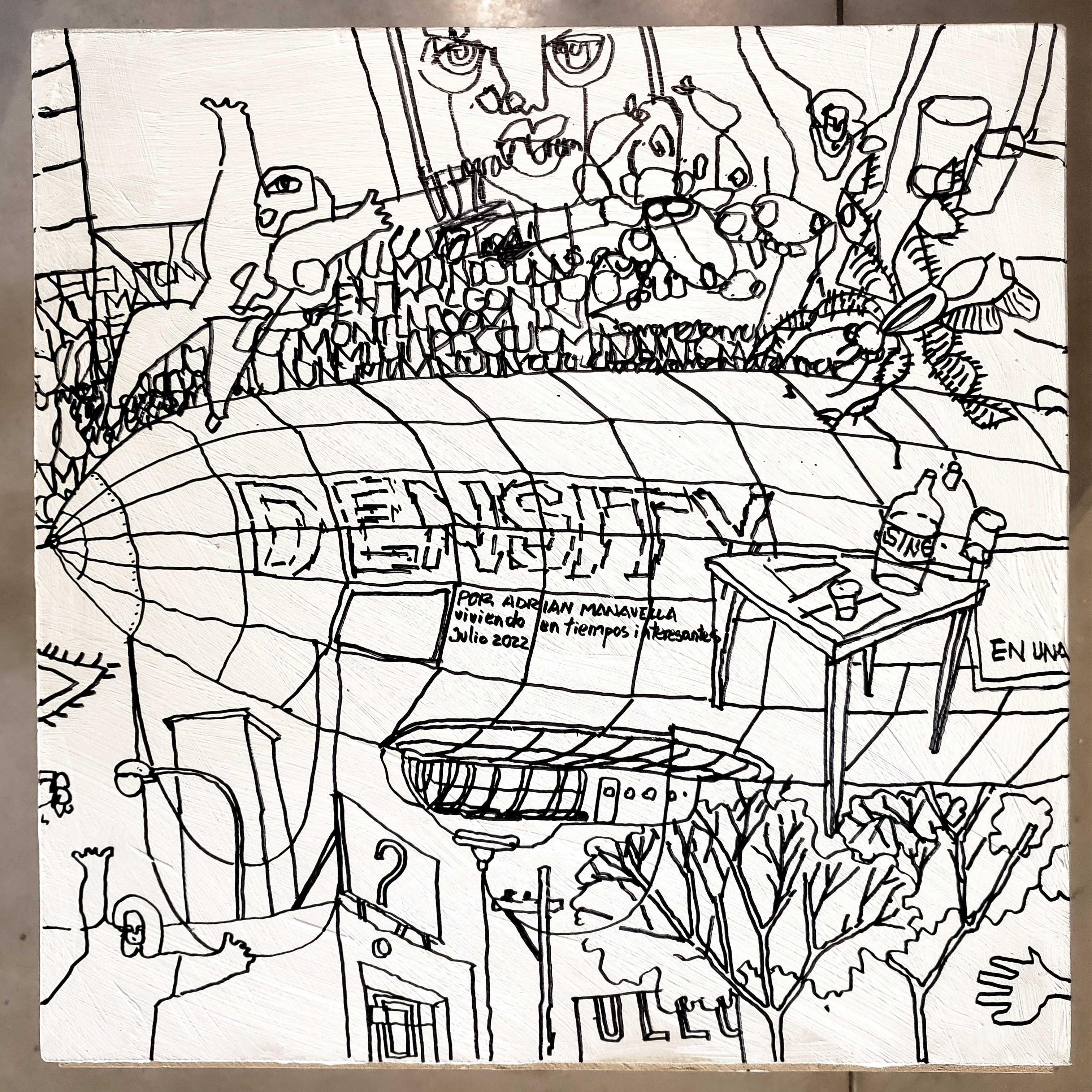 Es un volumen cúbico de madera intervenido con dibujo. Es una obra realizada para el evento solidario #bancodeartistas2022, invitado por @giuntamuebles y @bancodealimentoscba