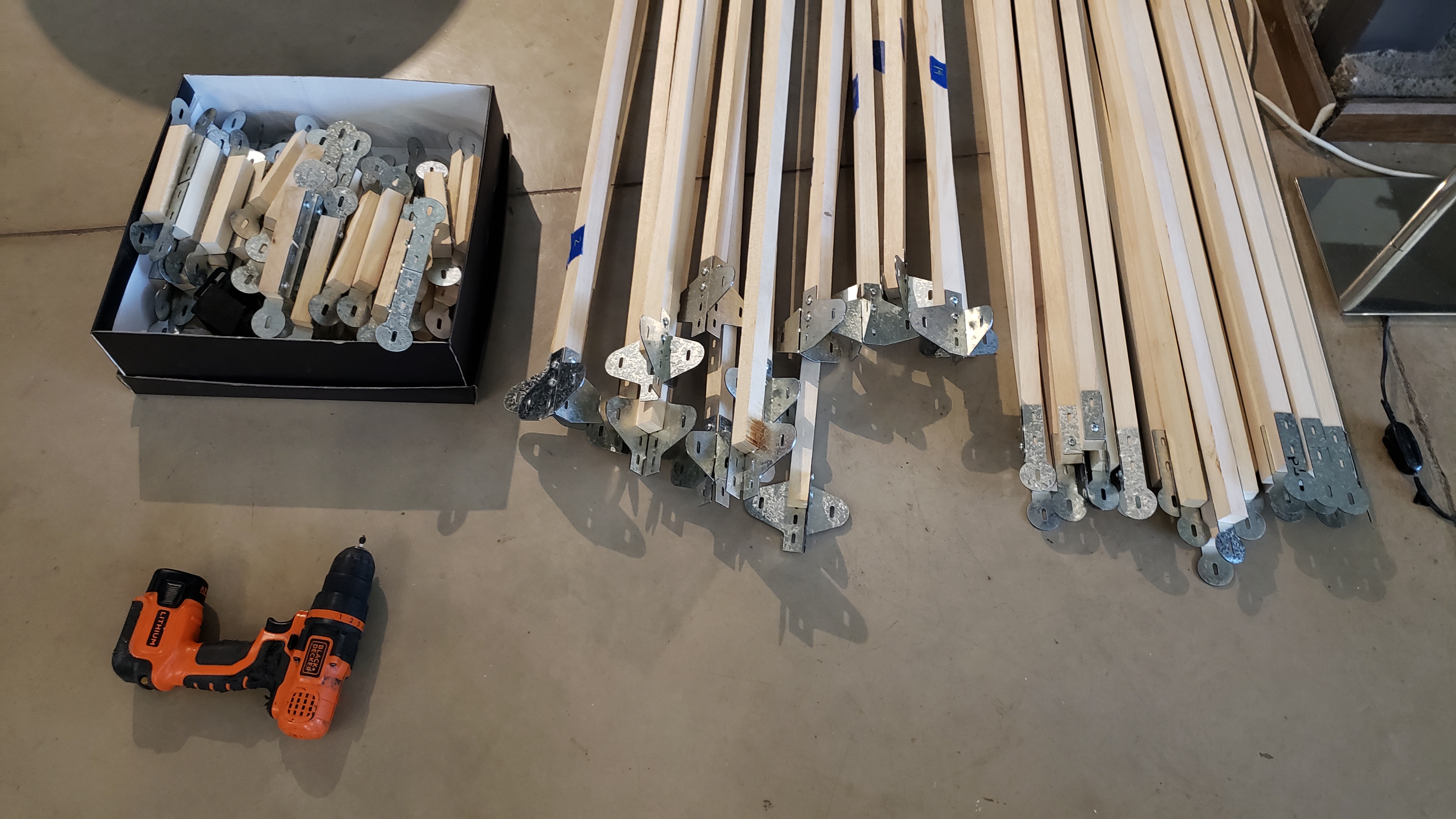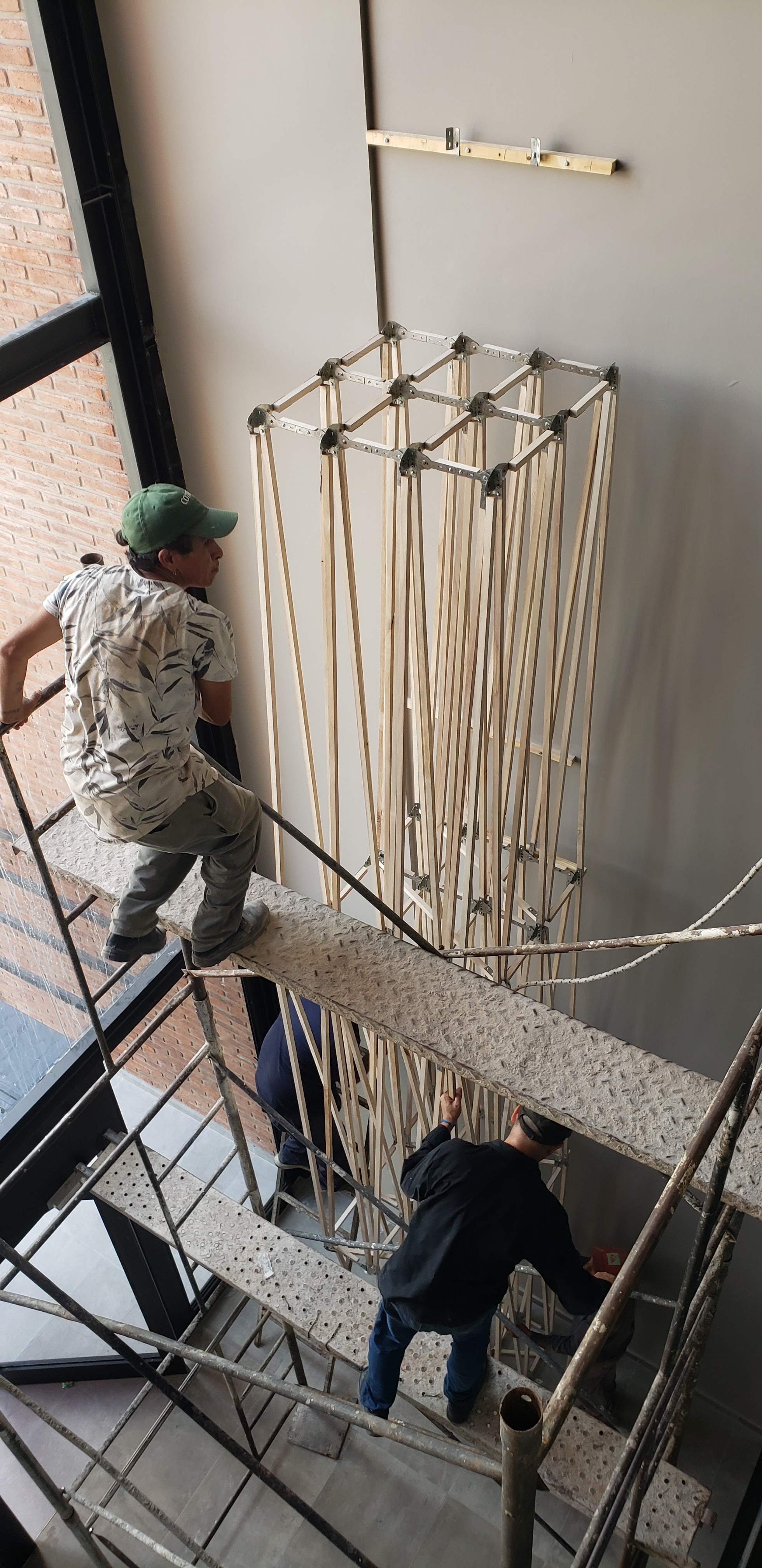 Las obras están realizadas en madera de kiri y nudos metálicos galvanizados cortados con CNC láser y diseñados ad hoc.