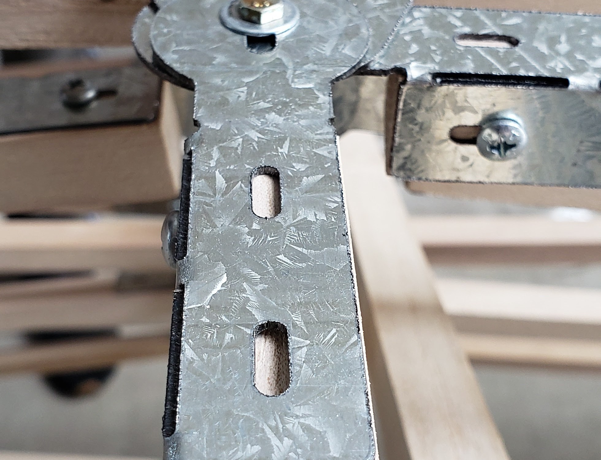 Las obras están realizadas en madera de kiri y nudos metálicos galvanizados cortados con CNC láser y diseñados ad hoc.